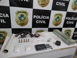 Durante a operação foram apreendidos um tablete de maconha, duas pequenas porções também de maconha, relevante quantidade de cocaína, uma balança de precisão e sacos plásticos utilizados para embalar as drogas, tudo encontrado dentro de uma bolsa azul, pertencente a uma criança, filho do investigado.