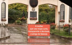 Placas polêmicas foram instaladas Miranápolis, povoado de Anápolis onde ficam vários mosteiros e igrejas. Algumas delas possuem mensagens como: “A mulher que usa roupa curta, transparente e decotada é amiga de Satanás” e “A bebida alcoólica é urina do capeta”. As placas foram instaladas próximas a um dos mosteiros da região.