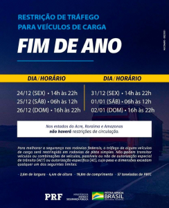 A Polícia Rodoviária Federal intensifica as fiscalizações nas rodovias federais que cortam o estado de Goiás a partir desta quinta-feira (30), em decorrência da virada do ano. O efetivo policial será reforçado até o próximo domingo (2), com o objetivo de reduzir os índices de mortalidade no trânsito, coibir infrações e combater crimes nas Brs goianas.
