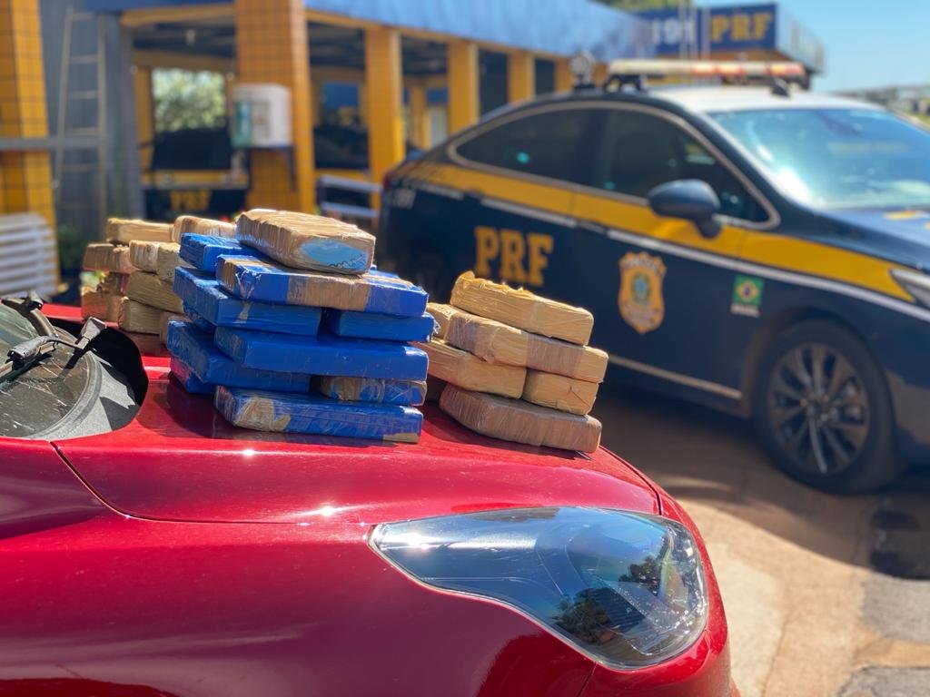 Três pessoas foram flagradas transportando 33 quilos de drogas no início da tarde desta terça-feira (25), na BR 364, em Jataí. Policiais rodoviários federais deram ordem de parada a um veículo de passeio Ford/Ka com placa de Rondônia. No carro, estavam o motorista de 27 anos, um passageiro de 48 e uma adolescente de 17 anos.