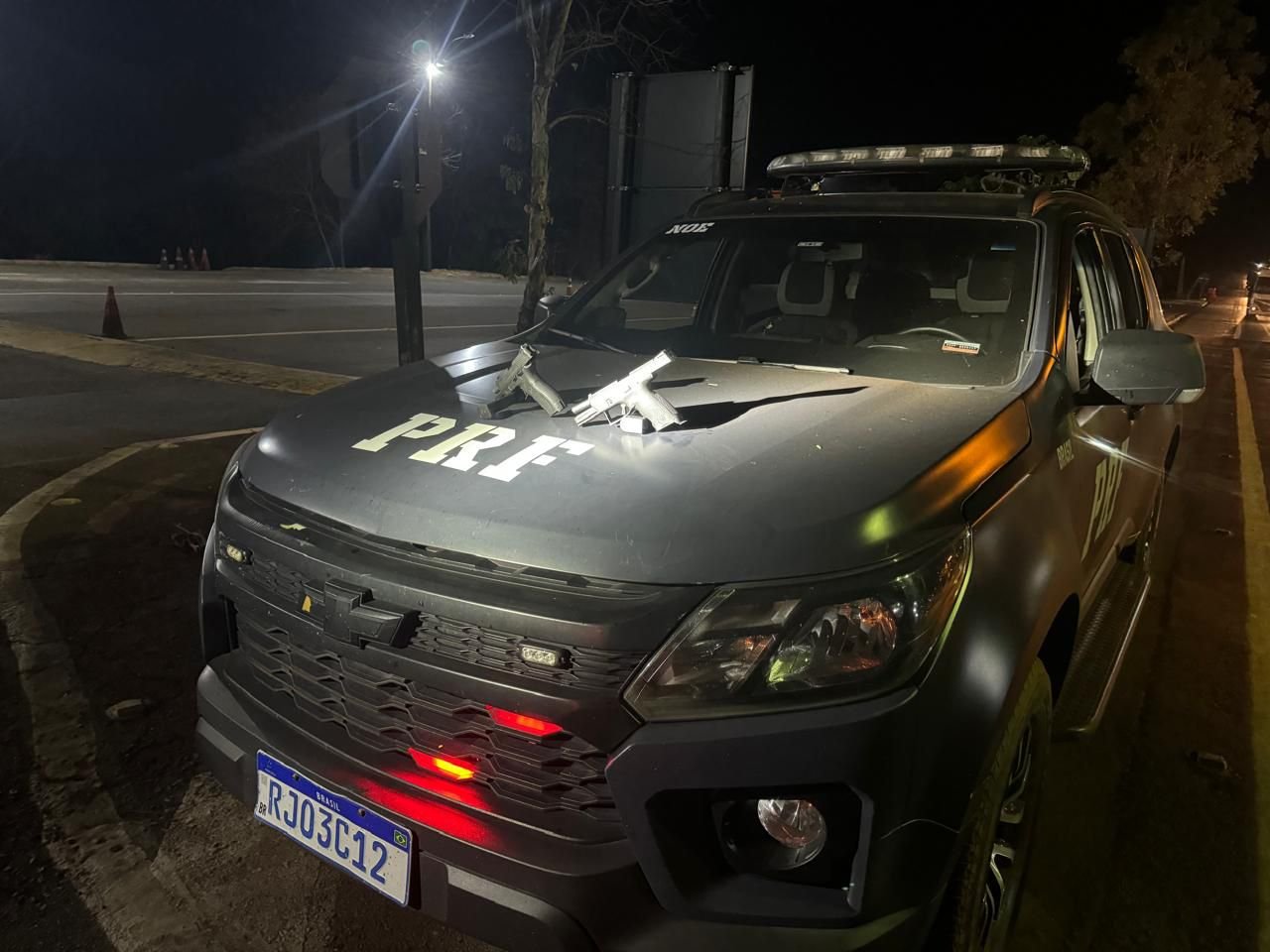 Foram encontradas uma pistola CZ P10, calibre 9mm, com 16 munições (calibre restrito), e uma Taurus PT 838, calibre .380, com 18 munições. As armas estavam prontas para uso, sendo uma localizada embaixo do banco do passageiro e a outra dentro de uma mochila no interior do veículo.