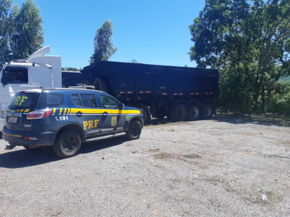 Em uma das ocorrências da PRF, era a segunda vez que o semi-reboque apreendido com a mesma placa