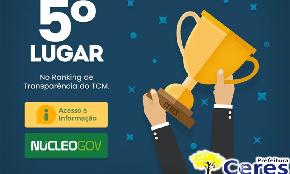 Segundo divulgado pelo Tribunal de Contas dos Municípios (TCM), a cidade de Ceres está no TOP 5 dos municípios mais transparentes do Estado neste ano, alcançando nota 93.