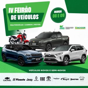 A Prefeitura de Ceres vai realizar o 4º Feirão de Automóveis novos e seminovos, que ocorrerá nos dias 8 e 9 de março na Praça Cívica em Ceres no Vale do São Patrício.