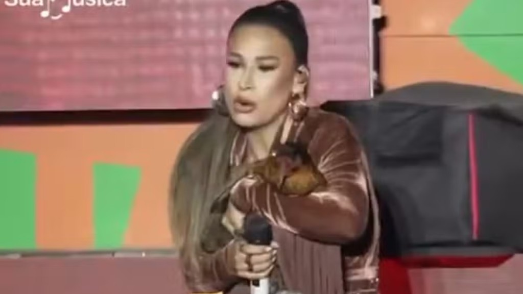 “Pega pra mim. É a primeira vez que eu ganho isso”, declarou Simone, espantada com o presente. Um homem pegou o animal e entregou para a cantora. “Ô, mamãe”, falou a artista ao pegar a galinha no colo. Ela abraçou, beijou e ainda fez carinho no animal: “A mamãe vai cuidar de você, dar milho, levar ao veterinário”.