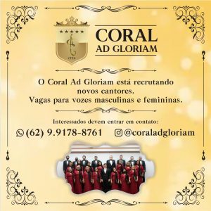 As vagas são para vozes masculinas e femininas. Os interessados podem entrar em contato através do telefone (62) 99178-8761 e pelo Instagram @coraladgloriam